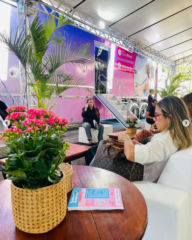 procedimentos realizados, entre exames e atendimentos. Os serviços oferecidos incluem mamografia bilateral digital, ultrassonografias, consultas com ginecologista e nutricionista, massoterapia, aferição de pressão arterial e glicose, além de análise de composição corporal por bioimpedância. Também são disponibilizadas orientações sobre o Planserv, Ouvidoria, Hospital de Brotas, agendamentos de consultas e demonstrações de telemedicina.